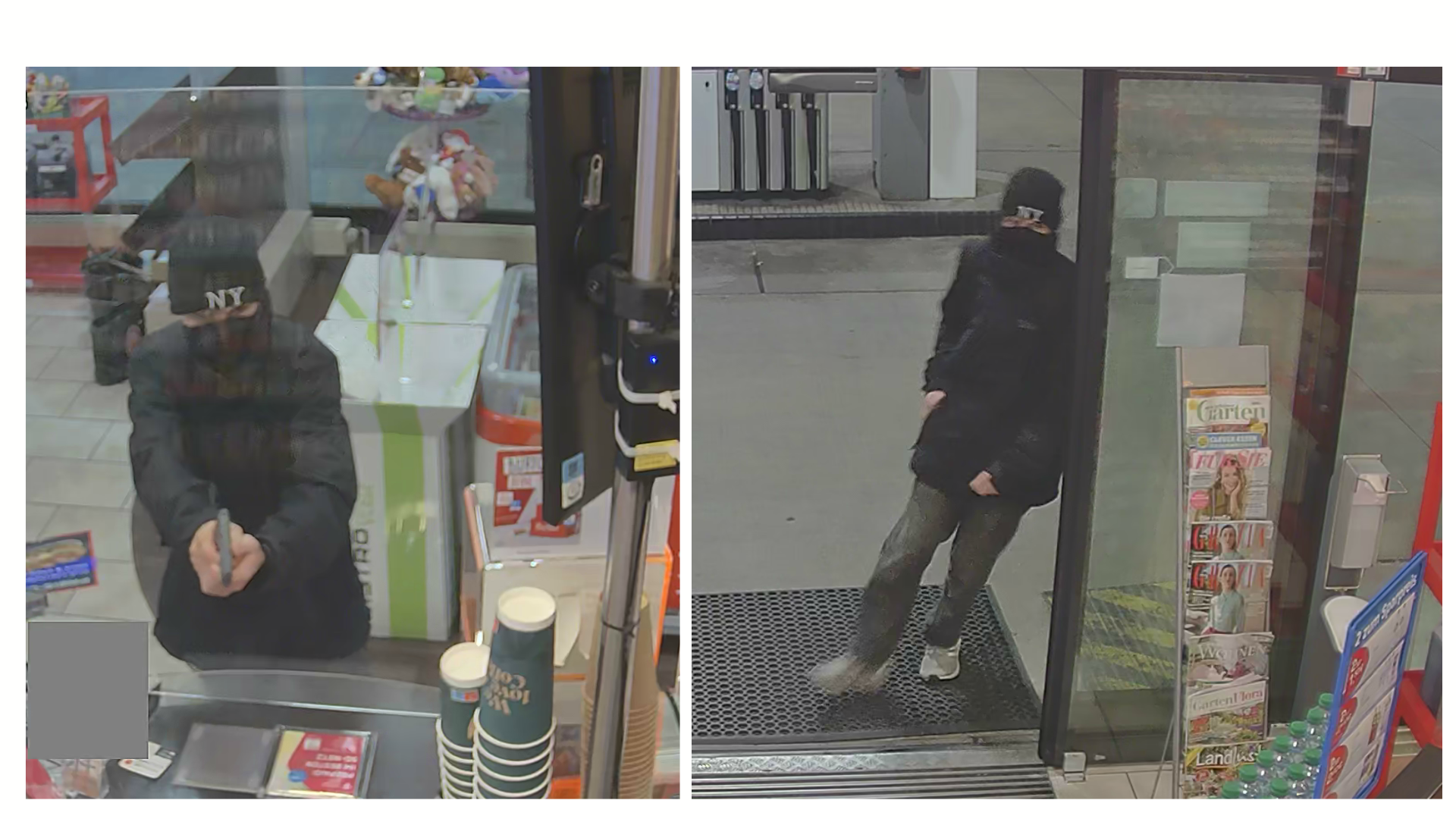 Vor knapp einem Monat, am 9. September 2025, betrat eine bisher unbekannte männliche Person gegen 21:20 Uhr den Verkaufsraum der Tamoil-Tankstelle in der Kalkberger Straße und forderte unter Vorhalt einer Waffe die Herausgabe von Bargeld. Nachdem die anwesenden Angestellten der Tankstelle der Forderung nachgekommen waren, entnahm der Unbekannte Bargeld aus dem Einsatz der Kasse, verstaute das Geld in einem mitgeführten Rucksack und verschwand. Aus Aufzeichnungen der Überwachungskameras ist ersichtlich, dass der Täter kurz vor der Raubstraftat mit einem Fahrrad angefahren kam und mit diesem auch den Tatort in Richtung Ortszentrum Schöneiche verließ. Der unbekannte Täter war ca. 1,65 bis 1,75 m groß, hatte eine schlanke Gestalt und sprach akzentfrei Deutsch. Das Alter des maskierten Täters wird auf ca. 20 Jahre geschätzt. Der Täter war mit einer grauen Hose, hellgrauen Adidas-Schuhen, einer schwarzen, hüftlangen Jacke sowie einer Skimaske und einer Wollmütze mit den weißen Initialen „NY“ bekleidet.