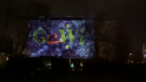 Lichtershow, singen von Weihnachtsliedern und Gewinnspiel