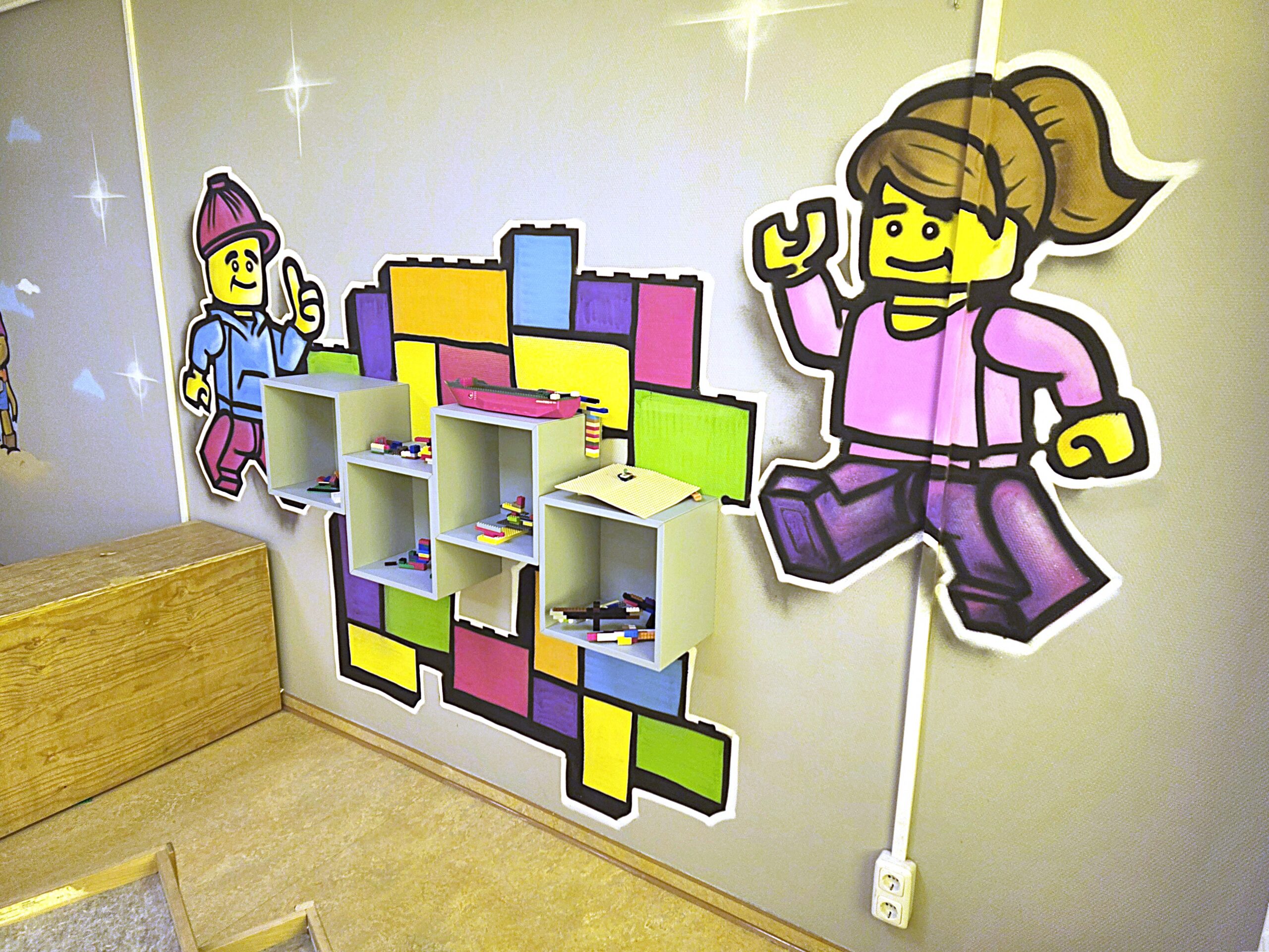Auch an Lego-Menschen erinnernde Figuren schmücken jetzt den Bauraum der Kita Kiefernzwerge des DRK-Kreisverbandes Märkisch- Oder-Havel-Spree e.V. Bildautor: Bernhard Schwiete/DRK-Kreisverband MOHS e.V.