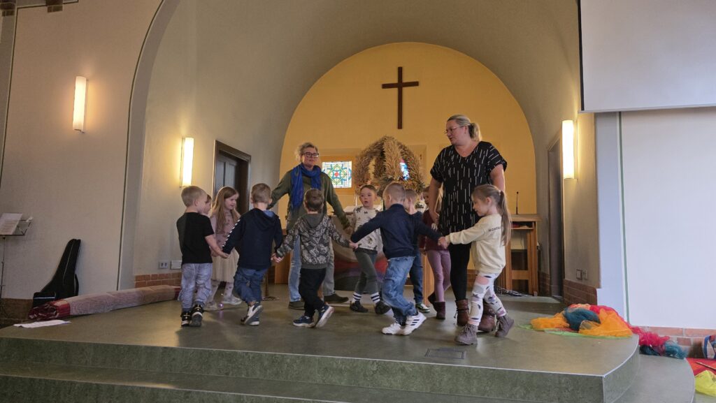 Mit bunten Tüchern, fröhlichen Liedern und viel Begeisterung gestalteten die Kinder der Kita Spielhaus am 13. Oktober 2025 die diesjährige Erntedank-Andacht in der Wichern-Kapelle. Zehn kleine Künstlerinnen und Künstler verzauberten…