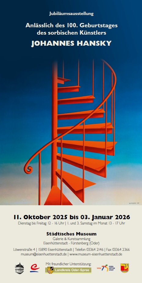 Das Städtische Museum Eisenhüttenstadt würdigt einen besonderen Künstler: Anlässlich des 100. Geburtstags von Johannes Hansky öffnet am 11. Oktober 2025 um 11 Uhr die Sonderausstellung „Eine Retrospektive" ihre Türen. Die…
