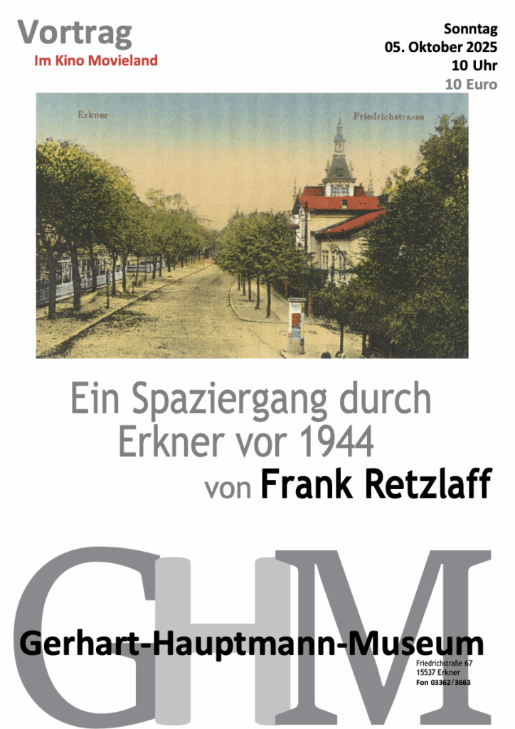 VORTRAG, KINO MOVIELAND 05.10.2025, 10:00 Uhr Ein Spaziergang durch Erkner vor 1944 An diesem Sonntagvormittag wird Sie Frank Retzlaff in gewohnter Weise in vergangene Zeiten entführen. Gehen Sie mit ihm…
